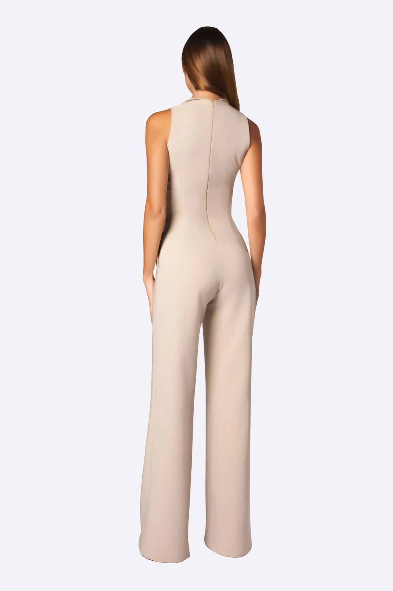 Haz que cada aparición cuente con el Mono Izan Beige de Carher, una prenda pensada para mujeres que desean vestir con seguridad, estilo y distinción.